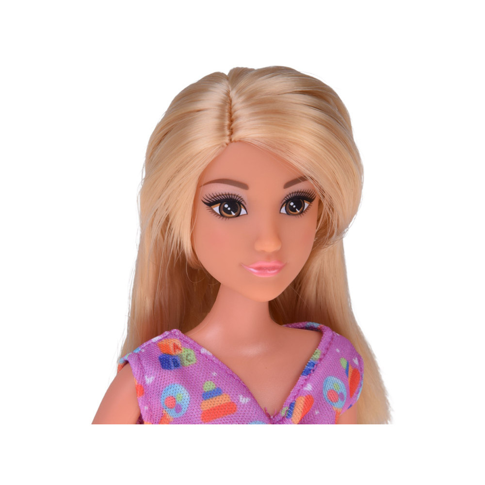 A készlet egy négytagú családot tartalmaz – anyukát, apukát, lányt és fiút. Az anya elegáns, pasztellszínű mintás ruhát és türkiz magassarkú cipőt visel. Hosszú, szőke haja és kedves, gyengéd mosolya van. Az apa modern megjelenésű: rövid haj, kockás ing, farmer és fehér sportcipő. Vállán hátizsákot hord, így úgy tűnik, éppen munkába indul. A gyerekek vidám, színes ruhákat viselnek – a kislány bájos ruhácskát, a kisfiú pedig kényelmes póló–nadrág szettet. Derűs arckifejezésük játékra és közös családi történetek kitalálására ösztönöz.