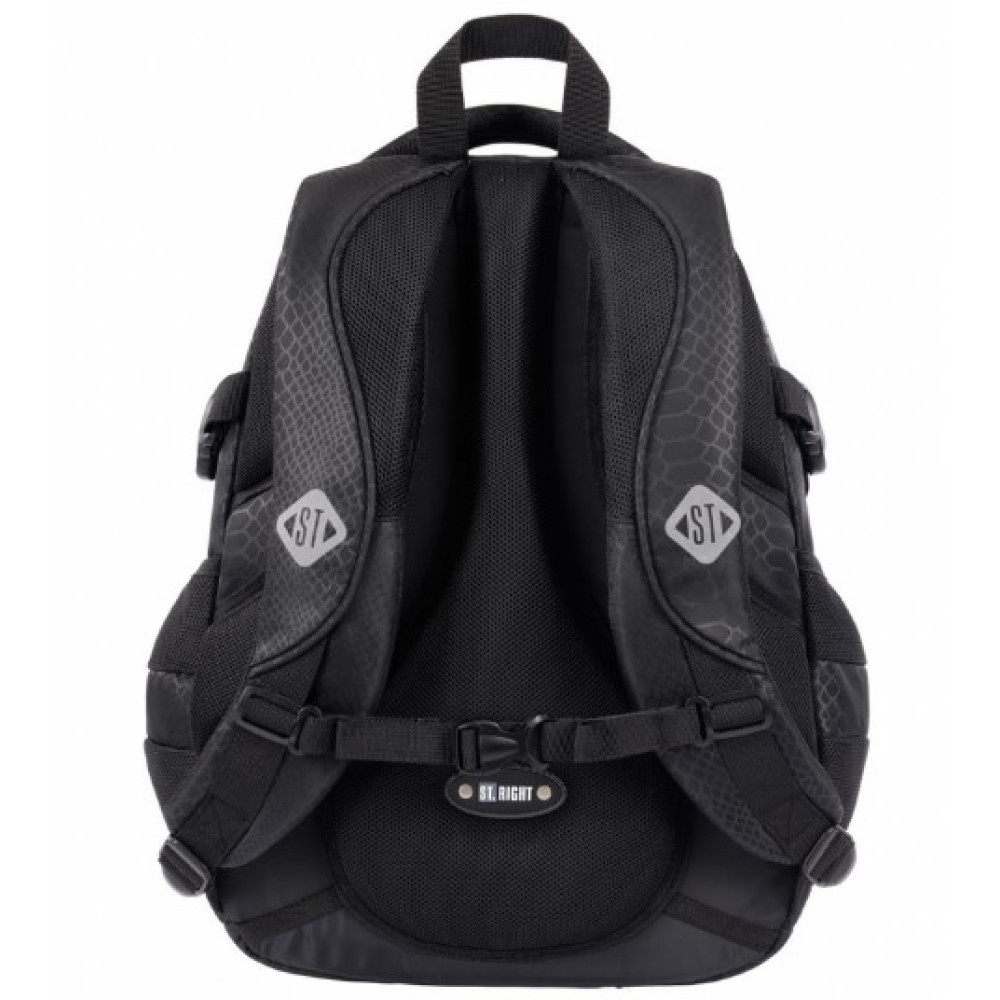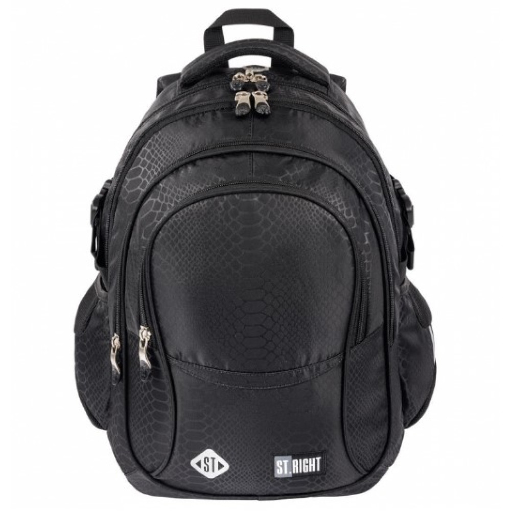 Az elegáns fekete ST.RIGHT hátizsák a modern dizájnt praktikus megoldásokkal ötvözi. A BP1 SHINY SNAKE modell 4 tágas rekesszel, ergonomikus kialakítással és számos hasznos részlettel rendelkezik, amelyeket értékelni fog az iskolában, utazáskor és szabadidejében egyaránt. A hátizsák felakasztó fogantyúval van ellátva, ami megkönnyíti a kezelést iskolai környezetben vagy otthon.