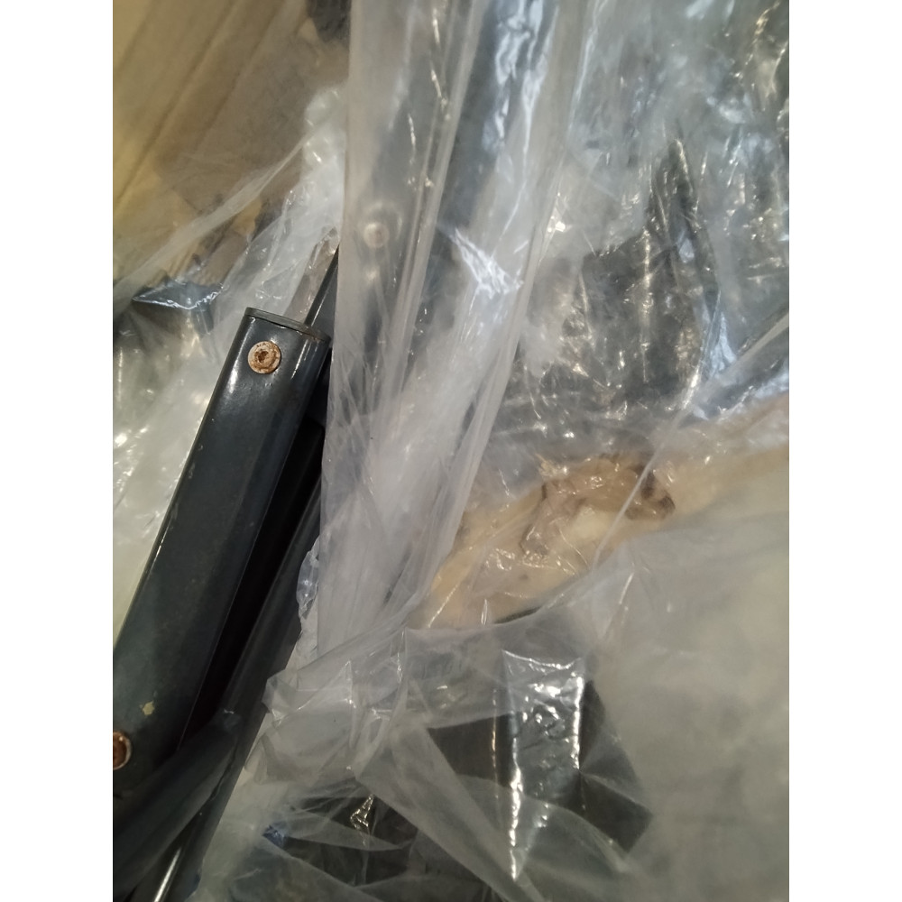 Az asztallap alján és a székek csavarjain kisebb rozsdásodás látható ,valamint a doboza is sérült!