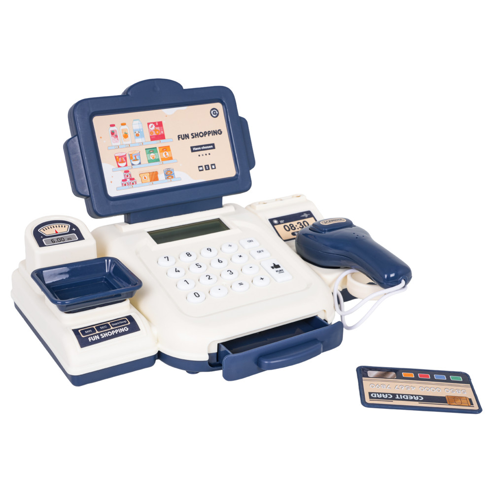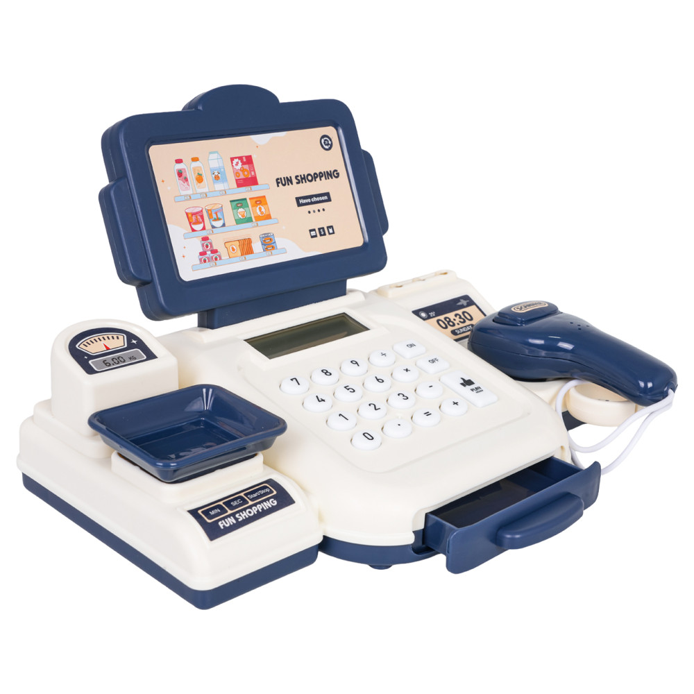 Interaktív pénztárgép kiegészítőkkel CASH REGISTER - kék-fehér