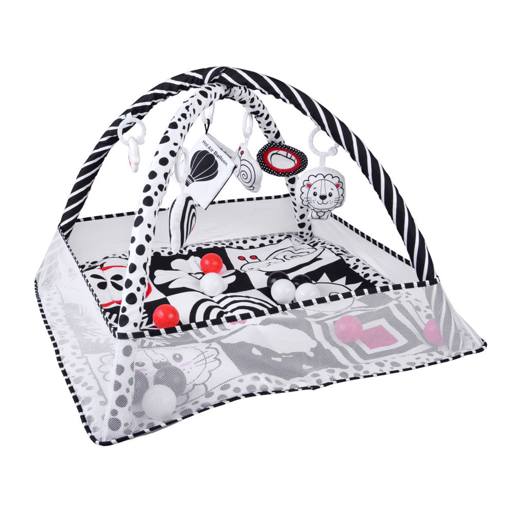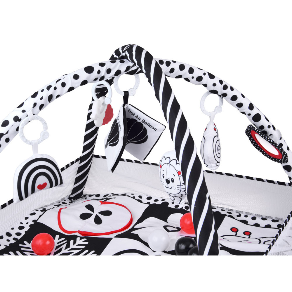 Kontrasztos oktató játszószőnyeg kerítéssel és labdákkal BABY PLAY GYM