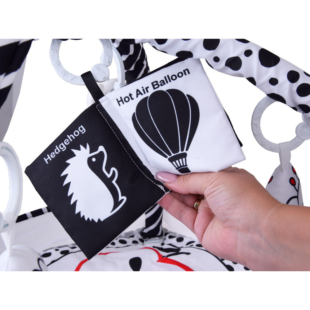 - játszószőnyeg hálófallal és kontrasztos képekkel