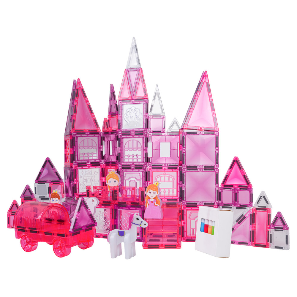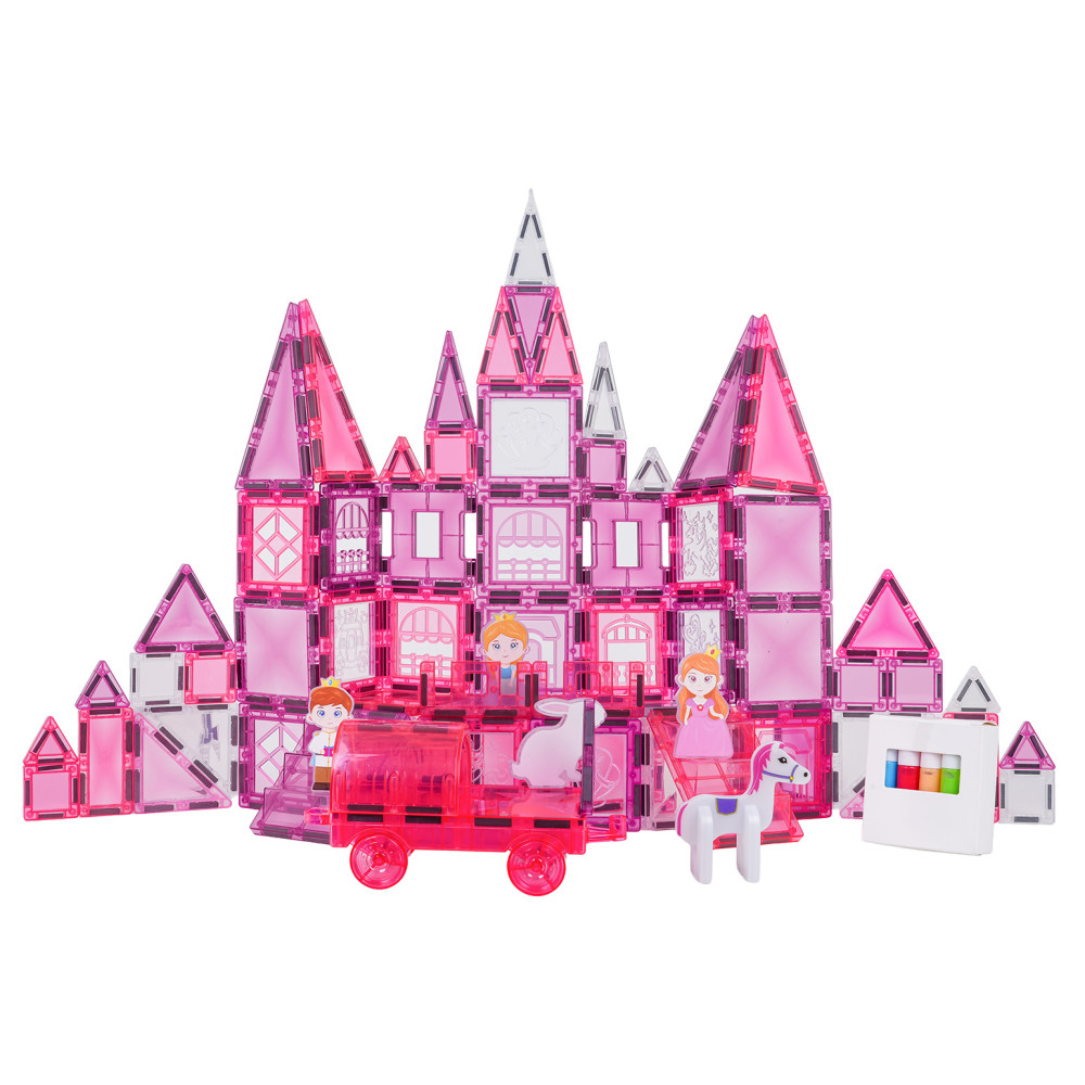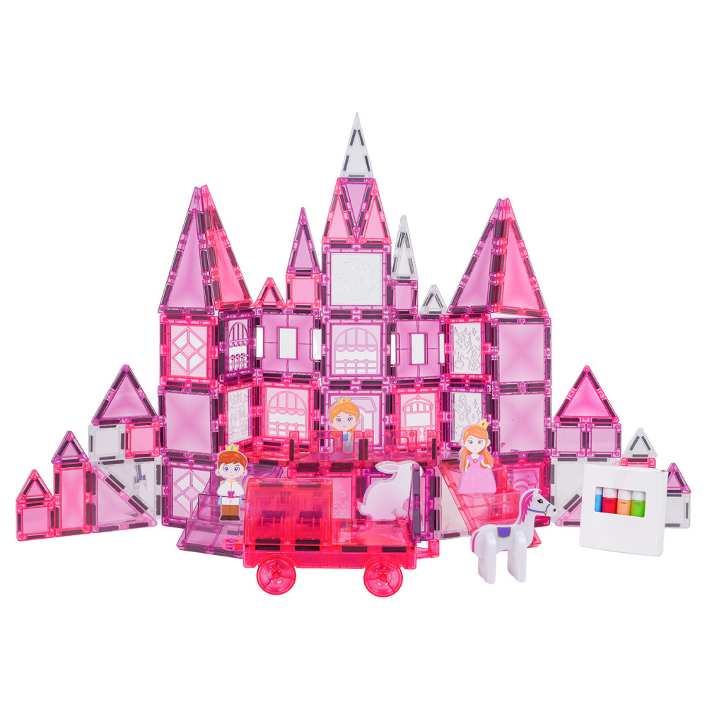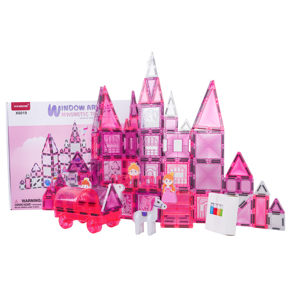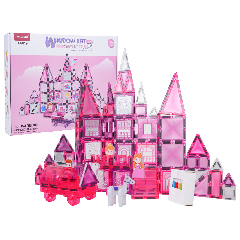 - Mágneses kockakészlet rajzolható elemekke 126 darabos WINDOW ART CASTLE - Rózsaszín