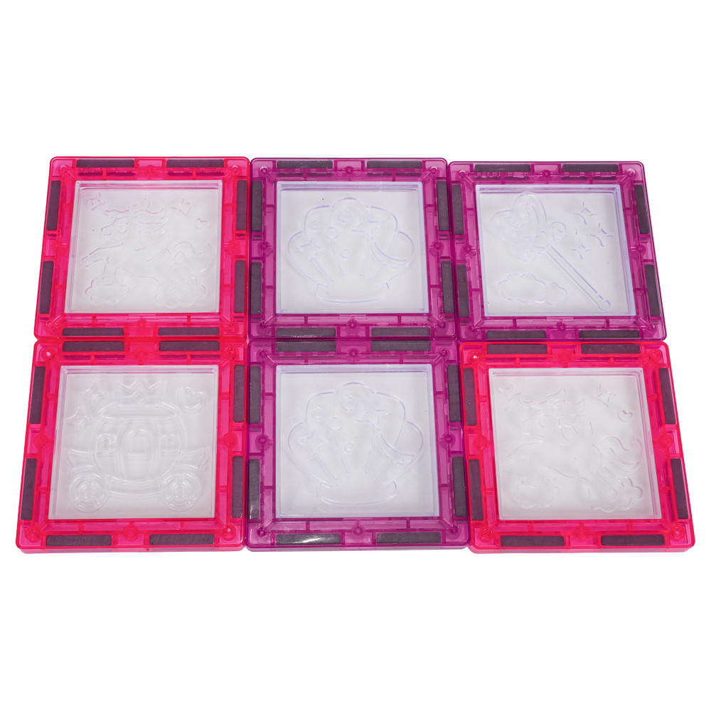 A mágneses kockák rajzolható elemekkel készlet 3 éves kortól ajánlott. A csomag 126 darabot tartalmaz, köztük mágneses kockákat, hercegnő- és lófigurákat, kerekes alvázat, valamint mágneses, rajzolható elemeket és filctollakat. A mágneses kockák tartós műanyagból készültek, és neodímium mágnesek kapcsolják őket össze. Különböző konfigurációkban és szögekben is összekapcsolhatók, így 3D szerkezetek hozhatók létre. A kockák építése fejleszti a kreativitást, valamint türelemre és koncentrációra tanít.