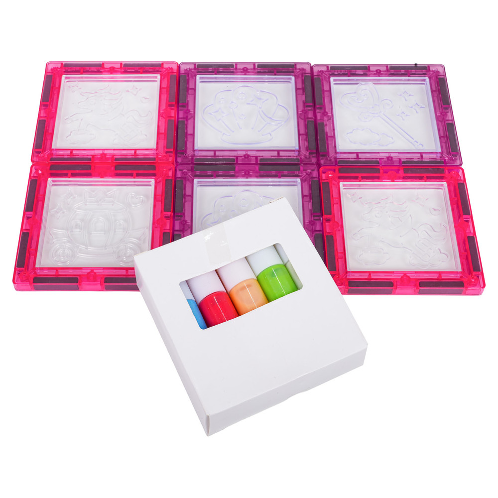 Mágneses kockakészlet rajzolható elemekke 126 darabos WINDOW ART CASTLE - Rózsaszín