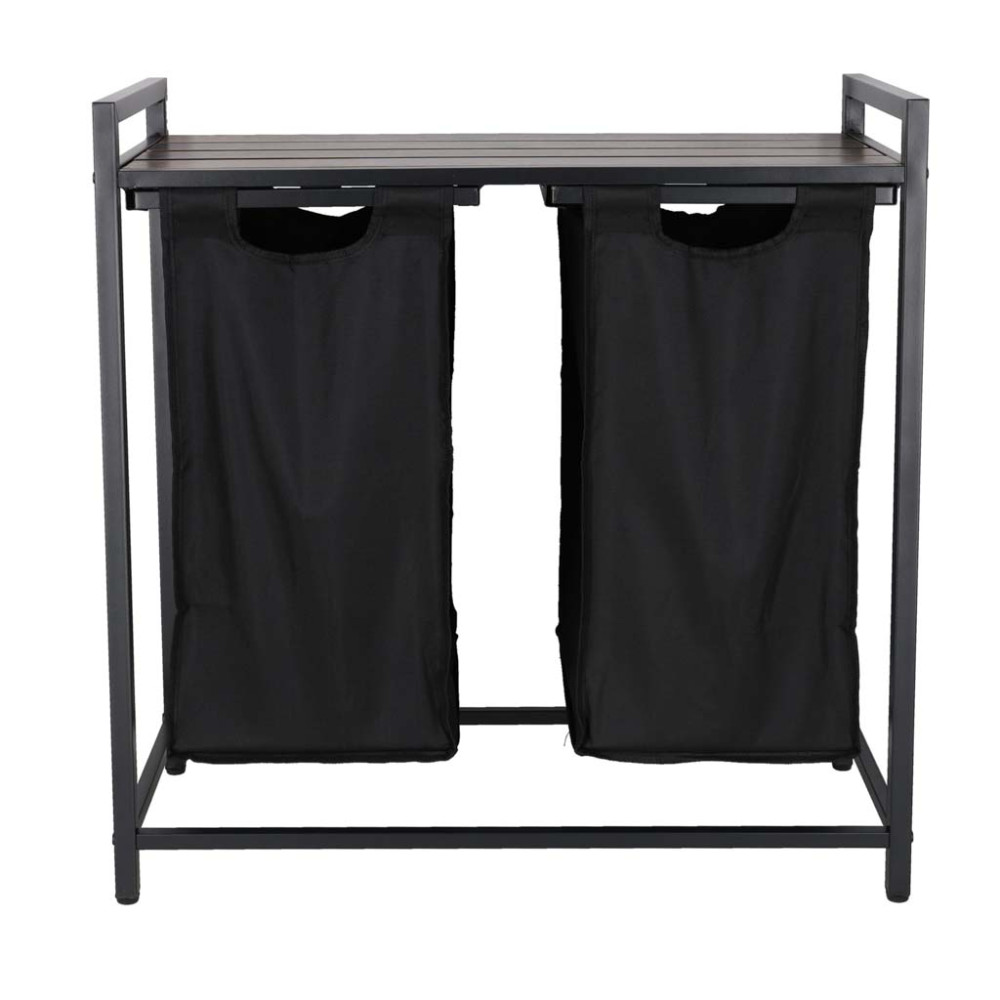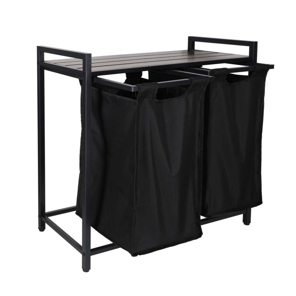 Az álló szennyeskosár kihúzható rekeszekkel praktikus megoldás otthonába. Segít rendszeresen szétválogatni a ruhákat és rendet tartani. A kosár univerzális kialakítása jól illik a belső tér stílusához is. A loft stílusú, többfunkciós szennyeskosár lehetővé teszi, hogy könnyedén rendet tartson környezetében. A kihúzható kosarak összesen 92 literes kapacitása elegendő helyet biztosít a szennyes ruhák számára. A két, párnázott aljú rekesz megkönnyíti a ruhák szín vagy anyag szerinti szétválogatását. A porszórt acélváz védett a nedvességtől. Könnyű szerkezete és praktikus fogantyúi megkönnyítik a kosár szobák közötti mozgatását. A kosarak fölött egy forgácslapból készült polc található, amelyre kozmetikumokat, virágokat vagy ruhákat lehet helyezni.