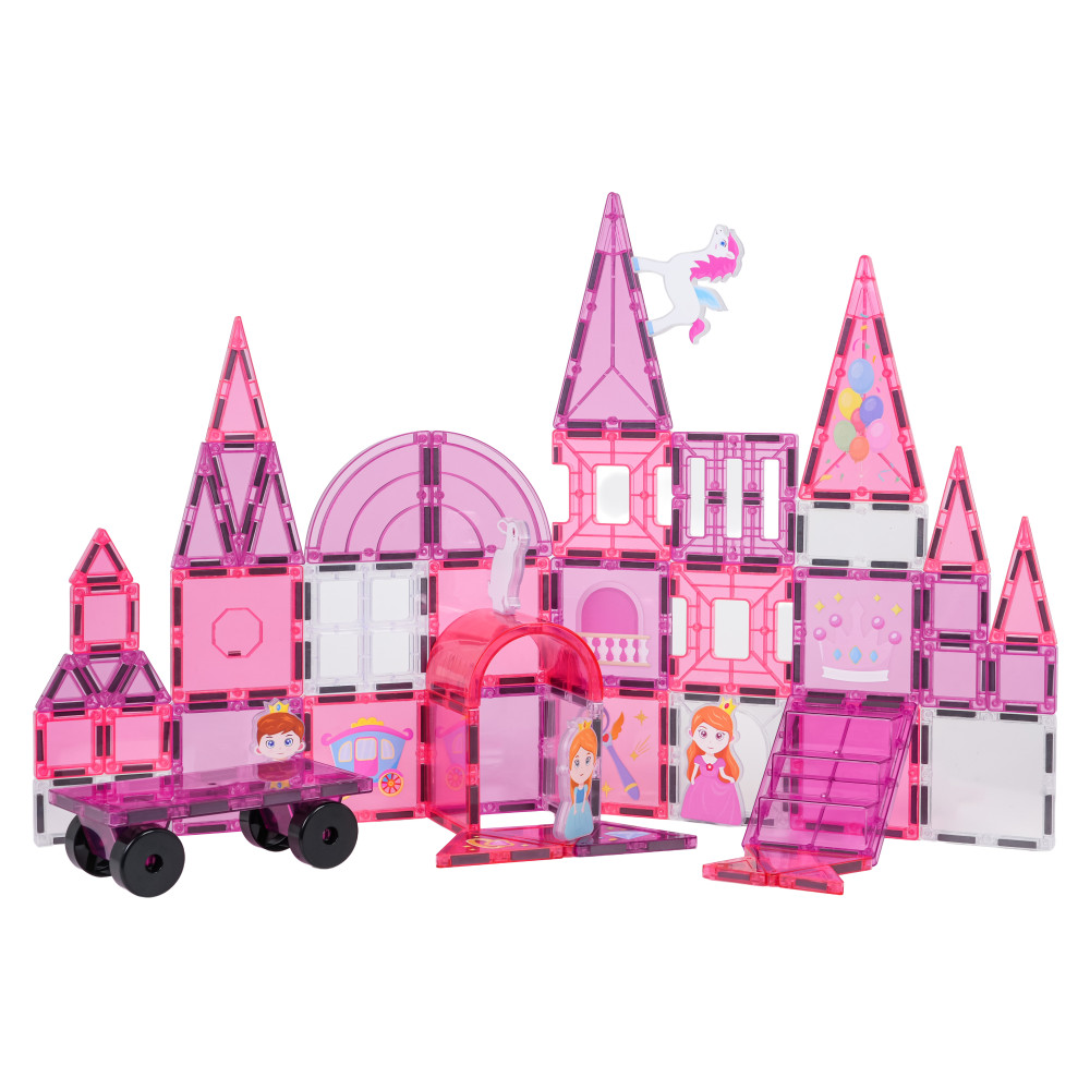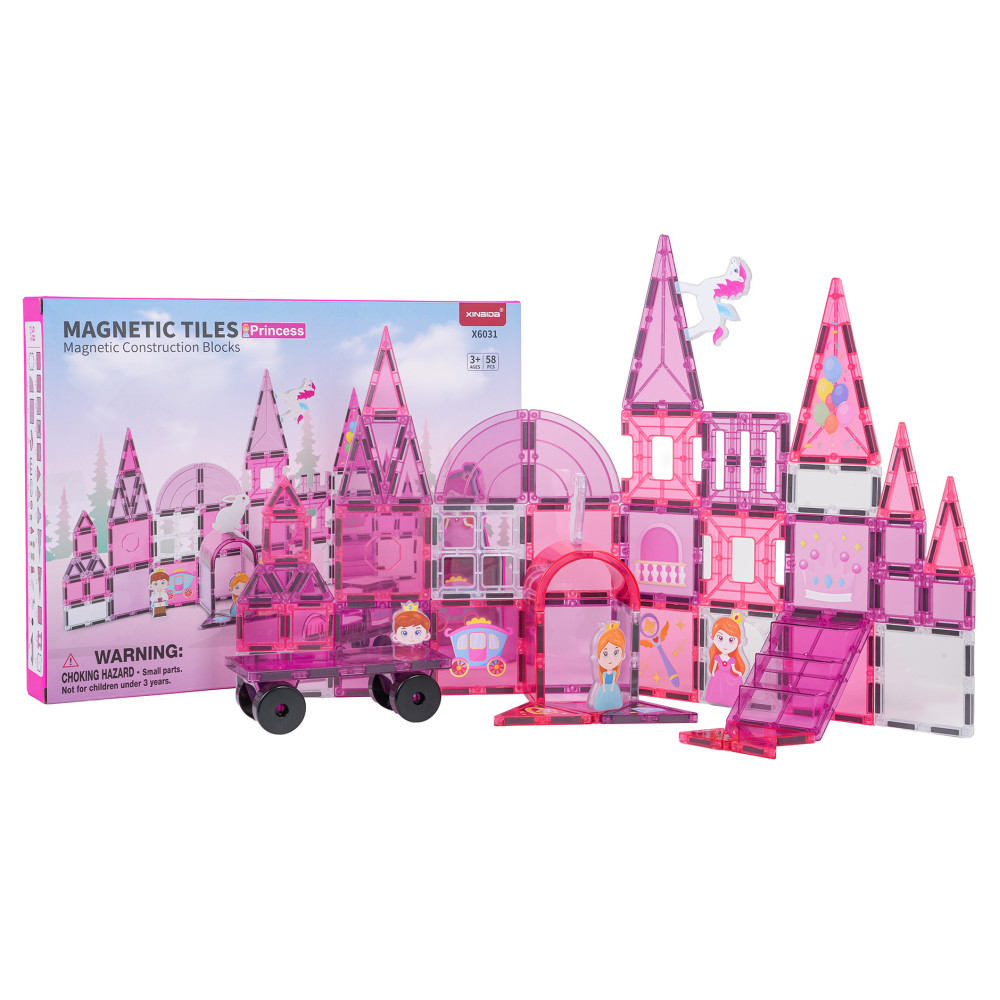 A mágneses kockakészlet hercegnői kastély építéséhez 3 éves kortól ajánlott. A készlet 58 darabot tartalmaz, köztük mágneses kockákat és mágneses figurákat: herceget, két hercegnőt, egyszarvút és nyuszit. A mágneses kockák tartós műanyagból készültek, és neodímium mágnesek kapcsolják össze őket. Különböző konfigurációkban és szögekben összekapcsolhatók, így 3D szerkezetek hozhatók létre. A kockák egymásra helyezése fejleszti a kreativitást, valamint türelemre és koncentrációra tanít.