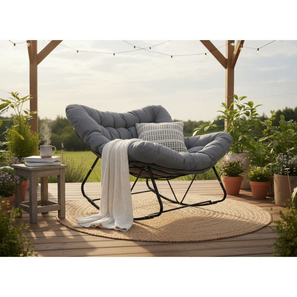 A modern kialakítás PE rattanból készült, elegáns sötétszürke színben. A vastag, 15 cm-es párnák és a stabil, porfestett acélvázas szerkezet biztosítják a kényelmet, a tartósságot és az otthonos hangulatot, amire a nap végén vágyik. A hintázás ebben a székben új élményt nyújt – nyugalmat, kiváló támaszt és luxus érzetet biztosít otthonában.